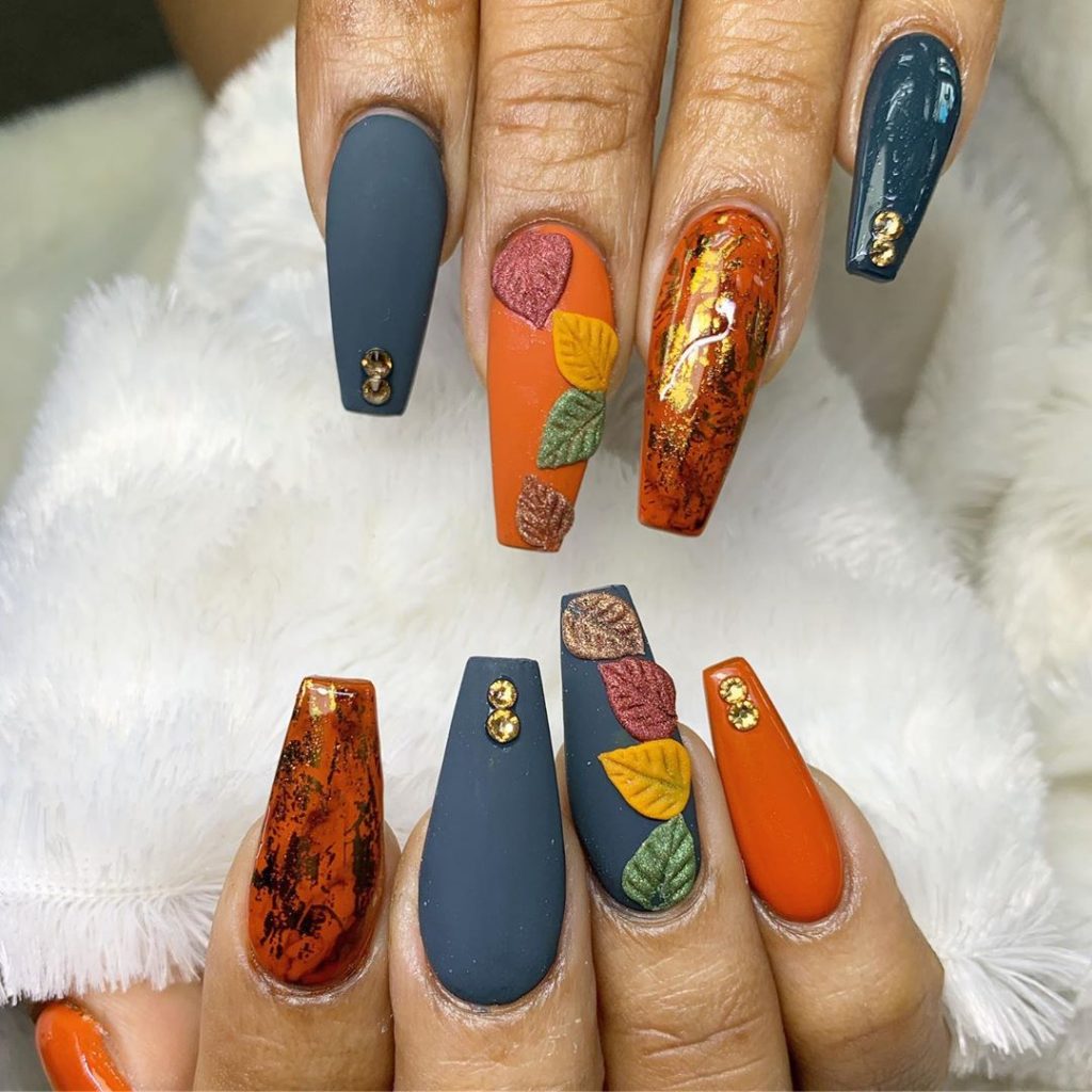 nails nail fall designs orange burnt coffin gold foil amazing colors accent matte 2021 acrylic lastminutestylist seehow xyz