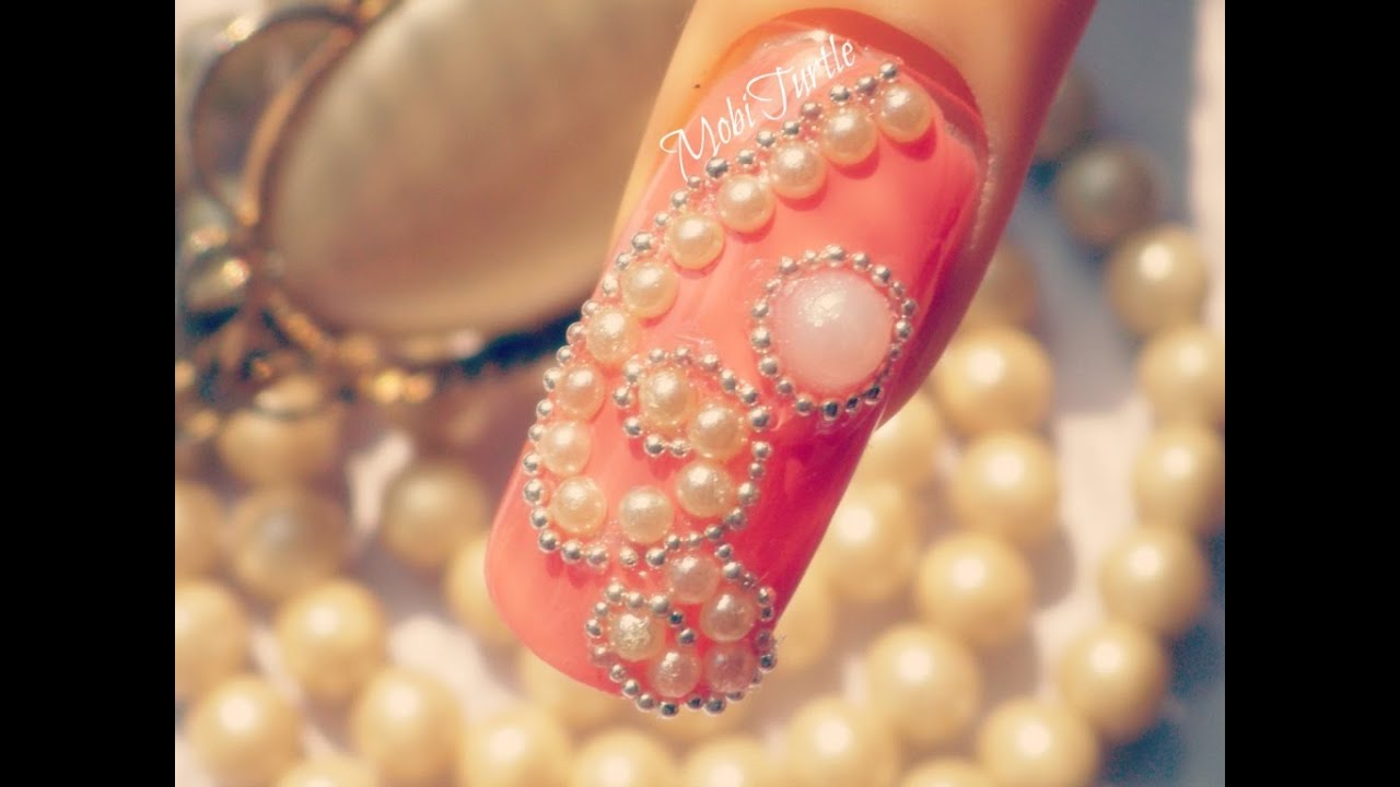 nail acrylic beads step 3d coral easy tutorial pearls sequin