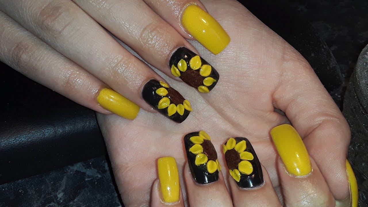 sunflower nail 3d nails sunflowers designs flower monomer yellow summer sun outstanding acrylic sheideas attempting short november
