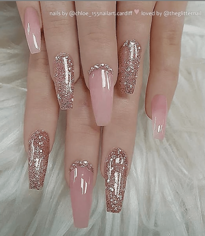 glitter nails nail nude diamond coffin acrylic glitzer gel med nagellack chrome naegel unghie disegni kunst inspo stenar ljusrosa och