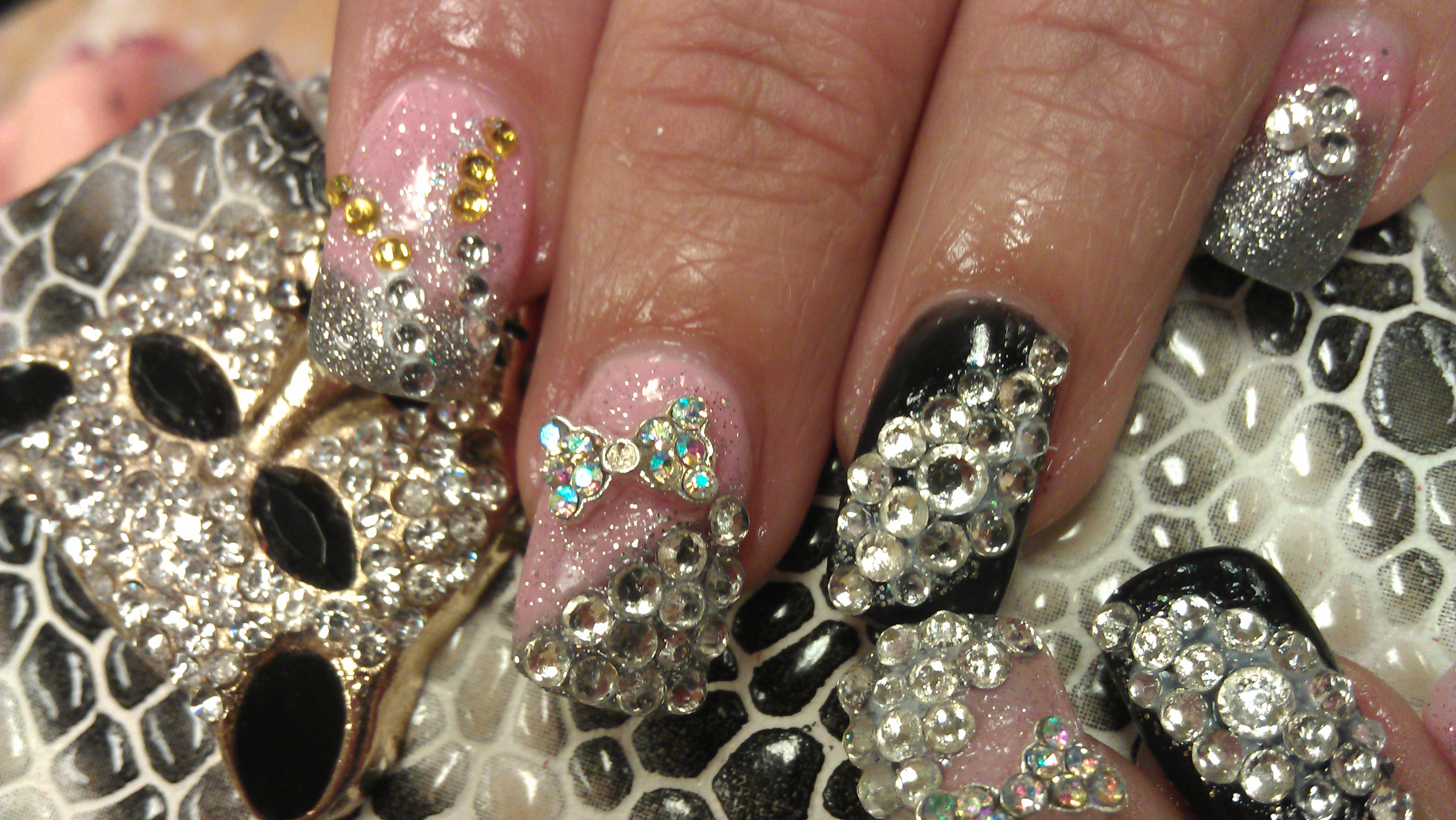 nails nail gel polish acrylic diamond designs 3d diamonds instagram stiletto glitter silver cool onedor pretty uv