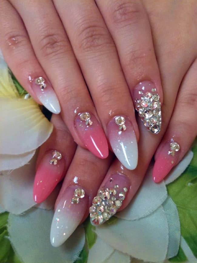 nail acrylic designs nails rhinestones simple rhinestone cute pink christmas pretty gems gradation jewel awesome swarovski acrylics cool ombre oval