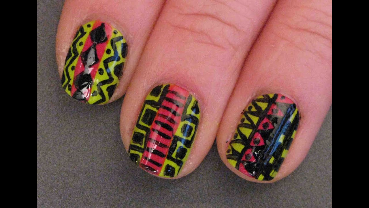 aztec nail neon tribal tutorial