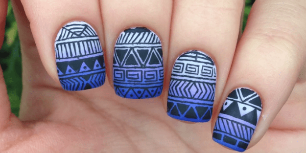 nail aztec purple tutorial gradient matte print designs