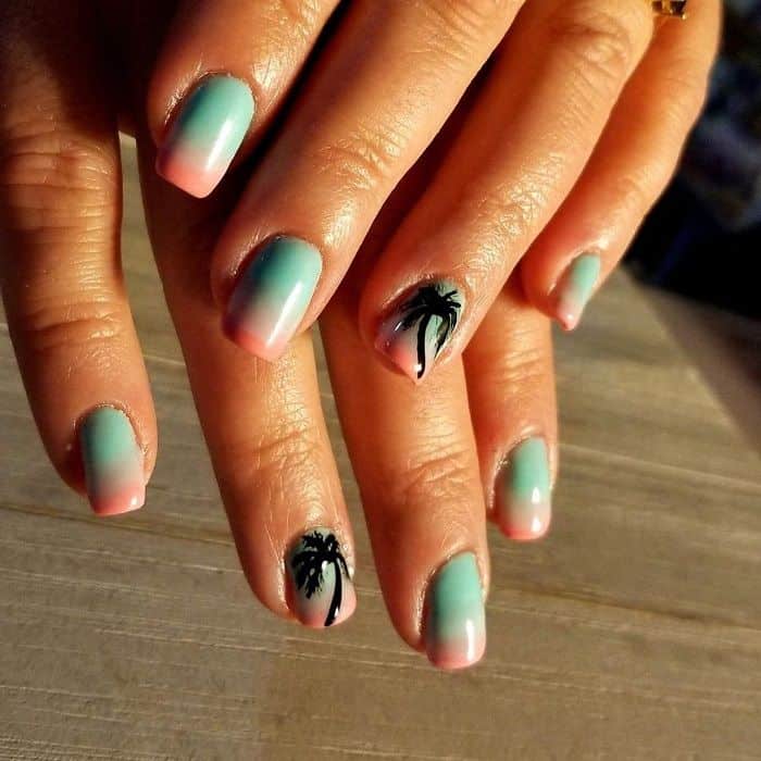 palm nails nail summer tree beach gel themed designs theme vacation tips accent teal pedicure polish fade hawaii coffin themes