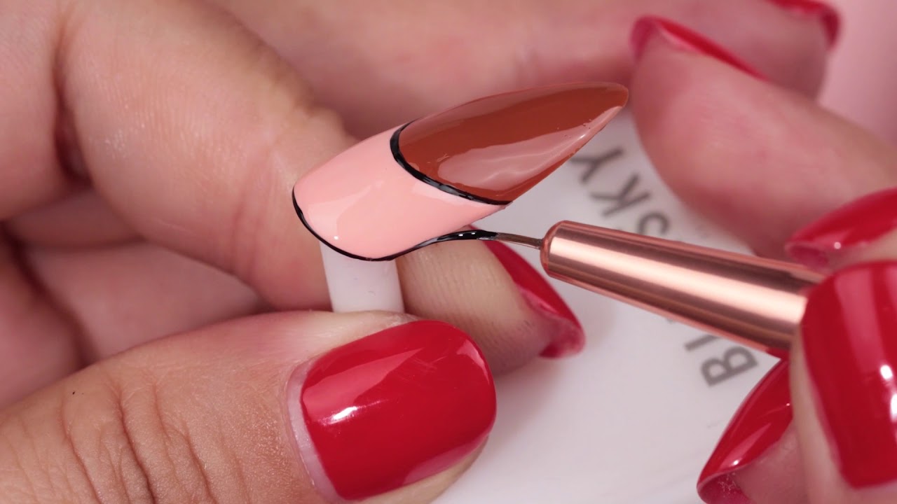 beige nail adorn bases shining stripes apply nails put decorations paint colors dark