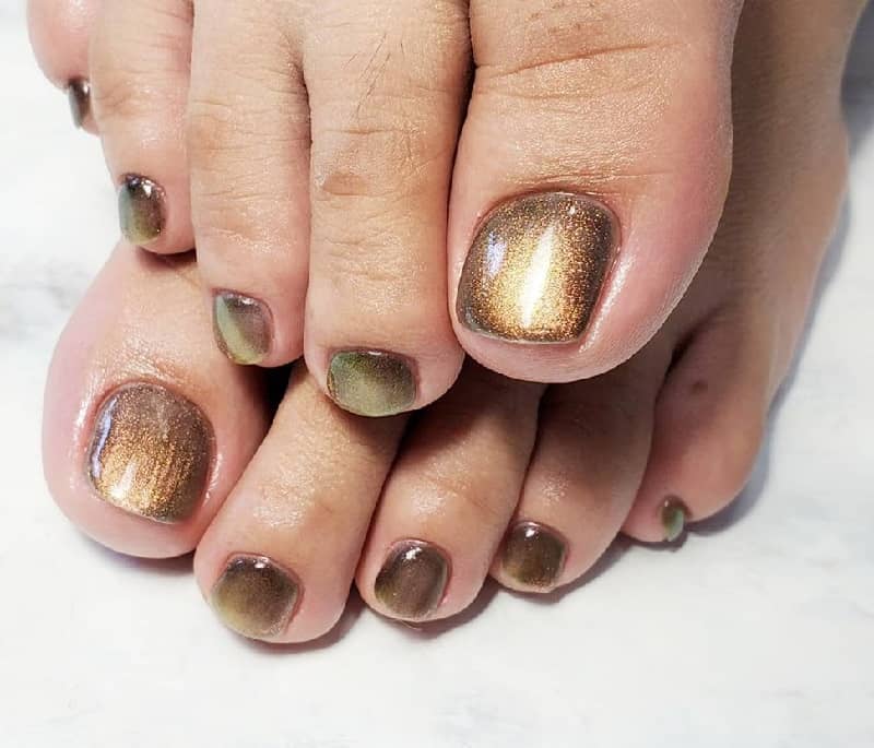 nail toe brown shimmering