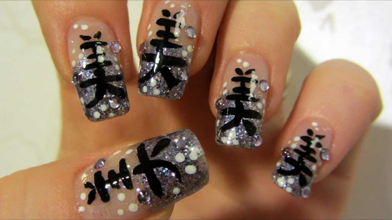 nail chinese symbols gel glitter designs tip tutorial idea silver latest character beauty purple