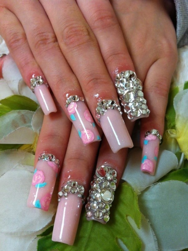 nail designs nails acrylic pink rhinestones painted flowers hand pretty xyz mycutenails girly floral clear gel navy disimpan dari