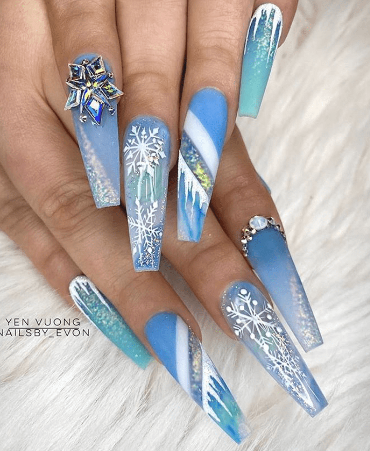 nails coffin acrylic nail winter shape rhinestones xmas unhas stylish must rhinestone brancas shaped cutest festive celebration awesome snowflake pretty