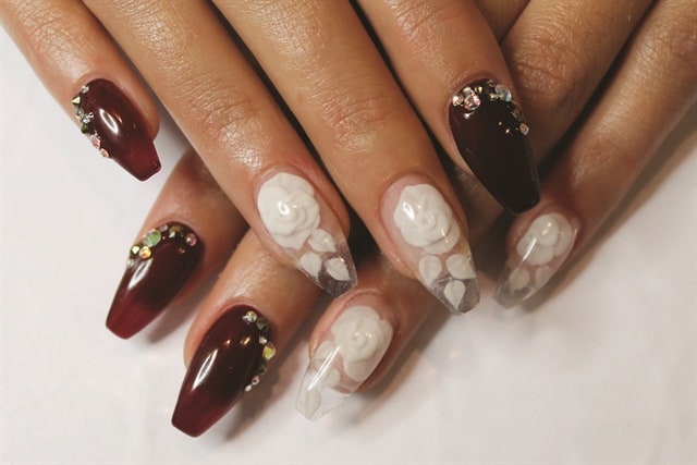 nails coffin burgundy shaped wine naildesignsjournal glamorous gemstones totally matching fine