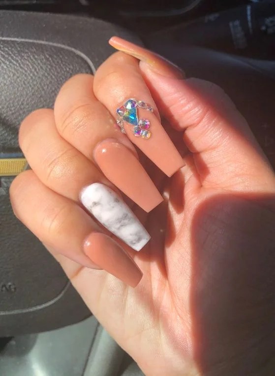 coffin nail designs peach marble instagram nails rhinestones ll wear want right nailz vanessa via source effect