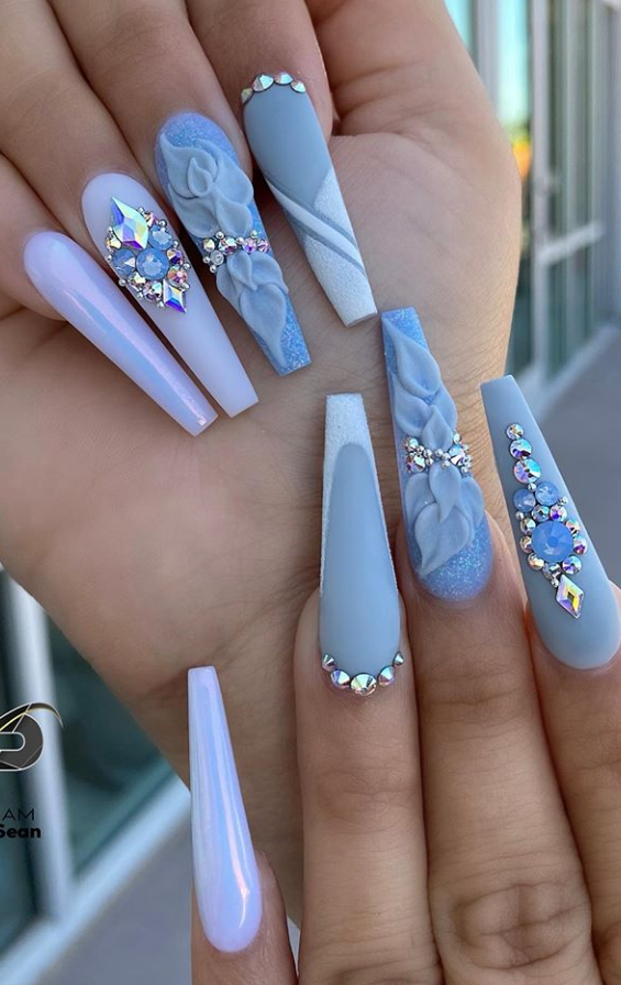 nails nail coffin cute unique designs acrylic rhinestone bling long matte gel chrome glitter fall fake tips 3d ballerina clear