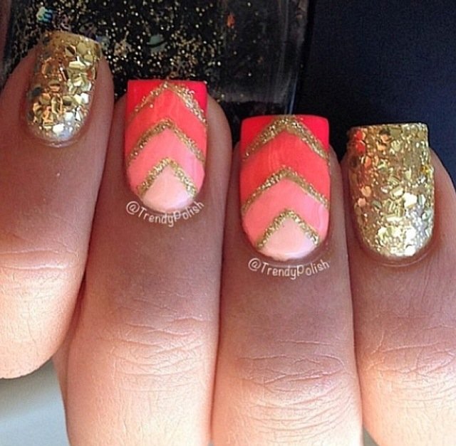 nails chevron coral nail designs gold orange pink amazing summer manicure gel pretty peach season ombre glitter sparkle via colors