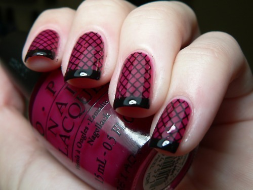 nails burgundy fishnet charming designs pretty via nail maroon polish halloween fishnets fish manicure pink using