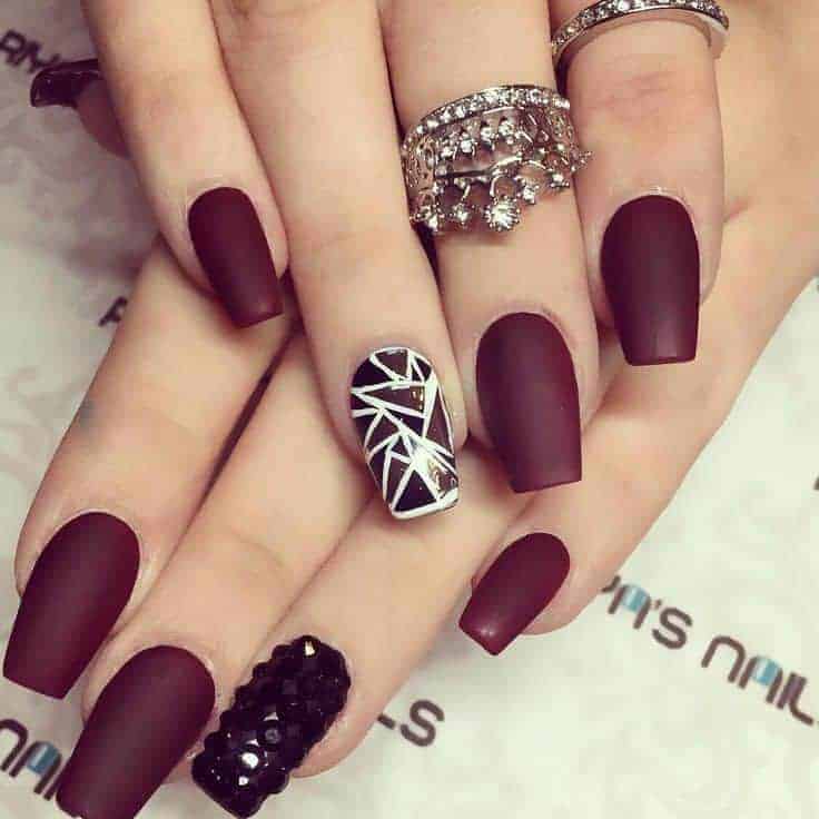 maroon nails burgundy nail matte unghie naildesignsjournal square pretty shape rhinestones glitter trendy prom manicure colors autunnali naildesign nailart dazzling