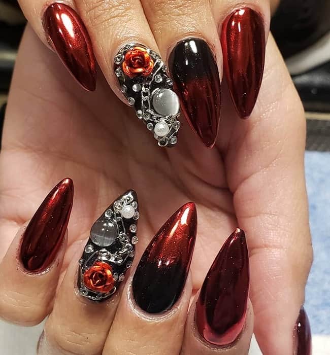 nails nail designs acrylic long stiletto ombre dark manicure fall go speechless catchy glitters rubies covered well very these