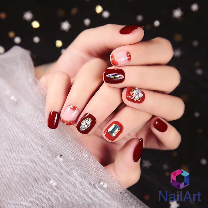 shopee nails acrylic false nail fingernails 24pcs rhinestone fake glitter