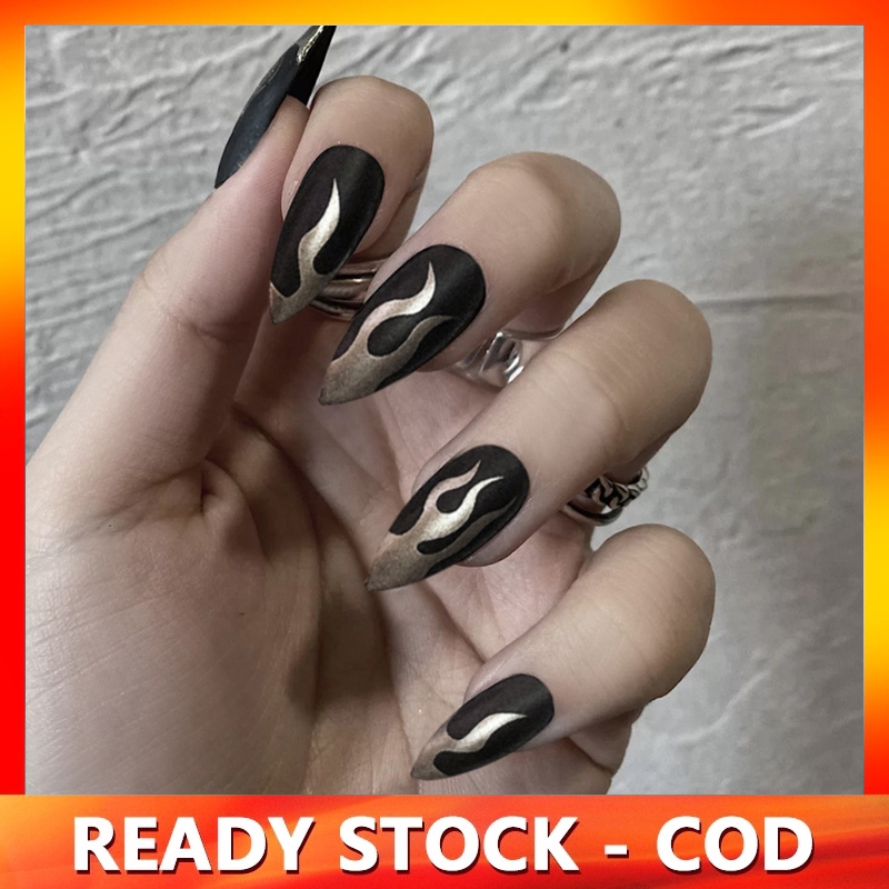 shopee nails fake flame nail 24pc punk finished matte round head short pattern