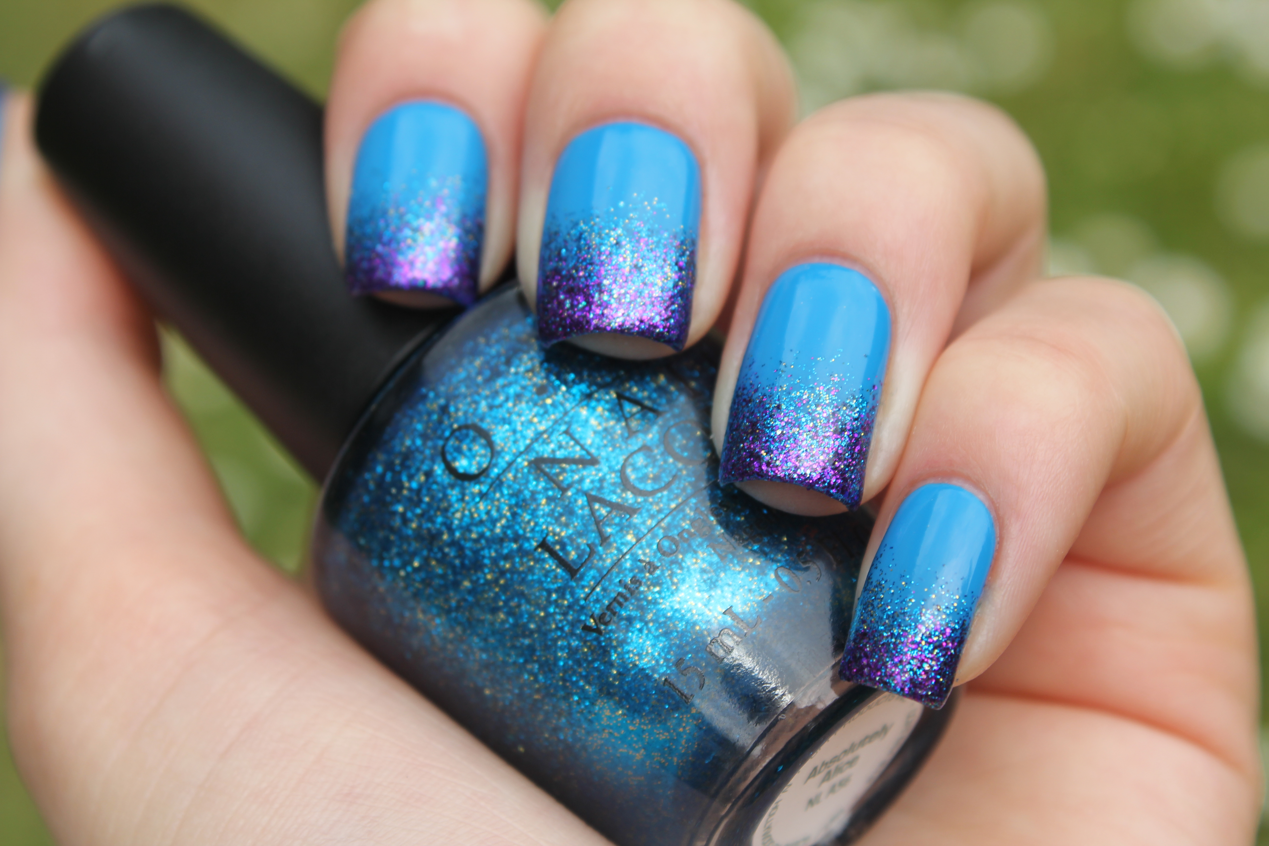 NOTD Blå/lilla glitter gradient Eurovision manicure