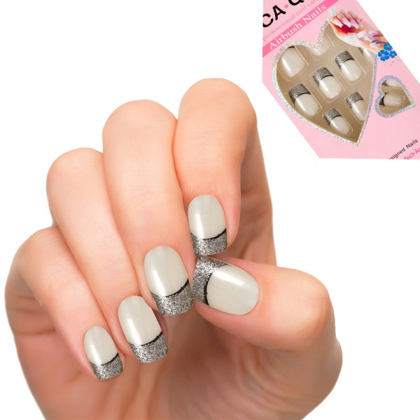 nails tips glitter wholesale false fake nail acrylic mn silver patch decoration display larger shipping