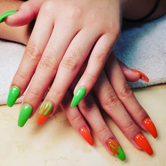 nails acrylic orange coffin nail gel bright neon acrylics square chaunlegend baddie stiletto colour toenails นท trendy