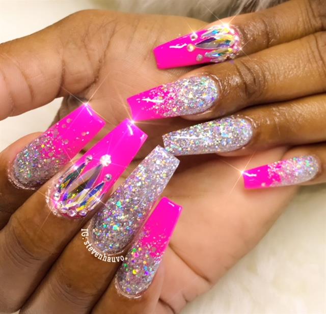 ombre nails glitter nail coffin french manicure gel acrylic nechty sparkle shiny matte naildesignsjournal dipped gradient acrylics med rhinestone ružove