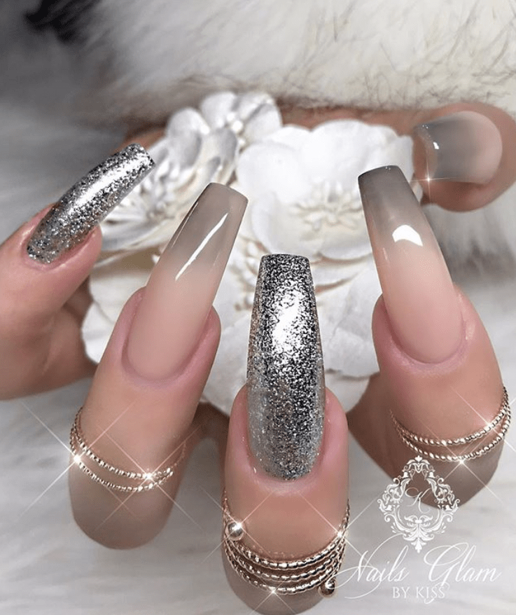 nails coffin nail acrylic greynails brown glitter turkiyexiaomi naill