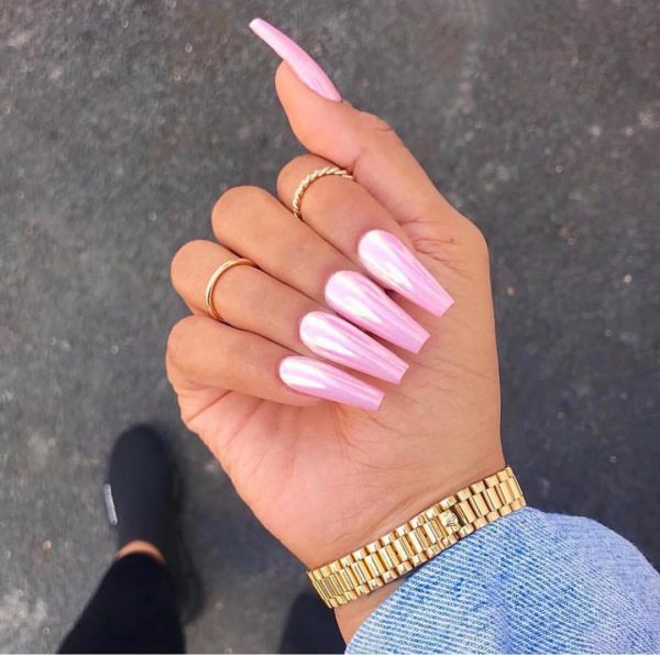 20 Shiny Light Pink Coffin Nail Art Design To Try In 2019