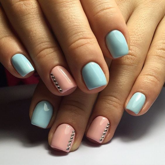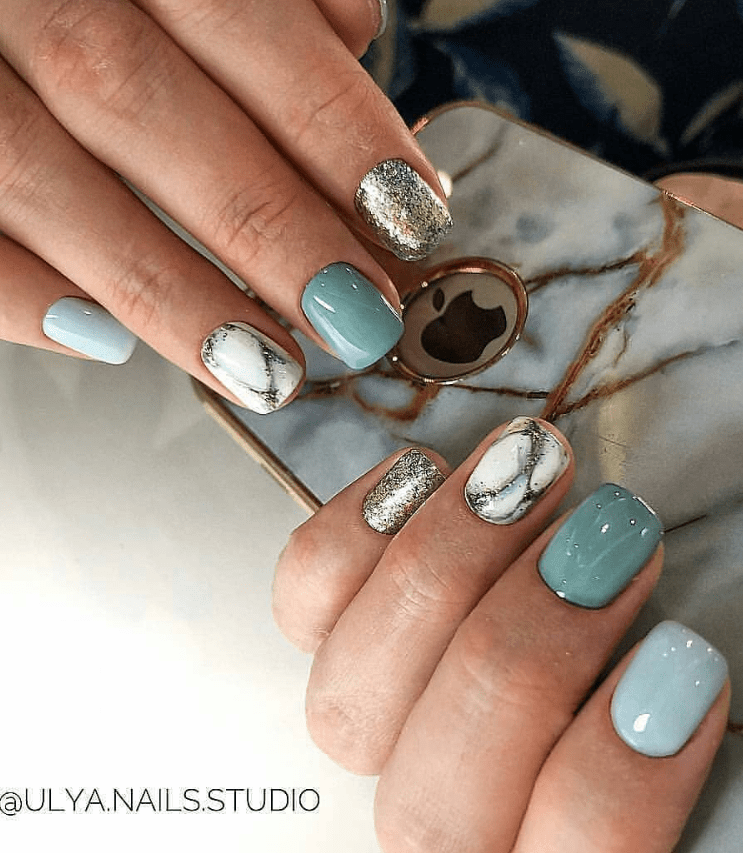 nails acrylic pastel square nail glitter colors short gel sns designs silver teal super manicure acyrlic matte