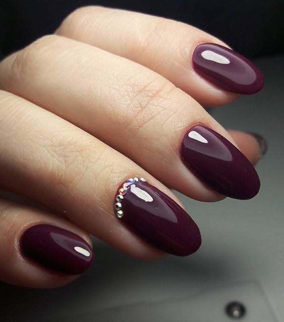 wine nails short nail acrylic coffin colored rhinestones nailspiration shade