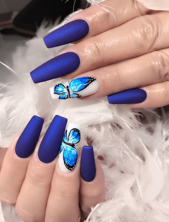 nails navy matte acrylic coffin hott