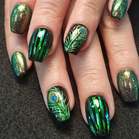 nails peacock nail designs feather acrylic instagram gel cute coffin polish opal 1990 christmas feathers nailart long