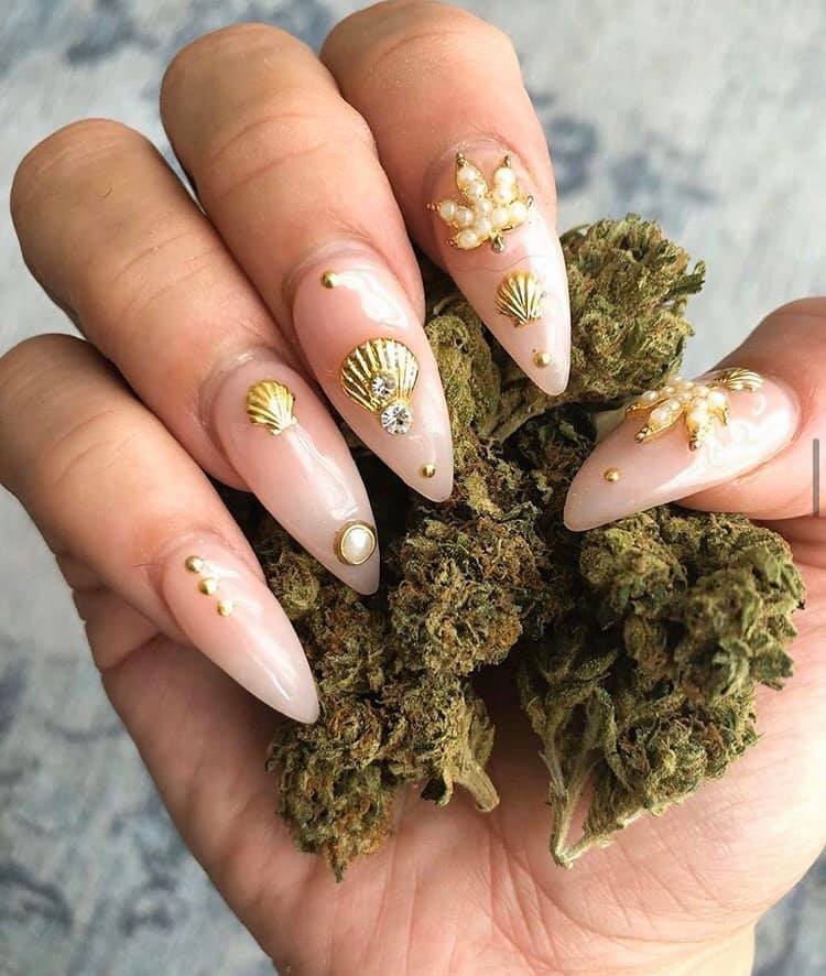 weed nails nail inspired dope spiffy spliff rings marihuana versace popsugar gold designs coffin gel cannabis marijuana swag pot long