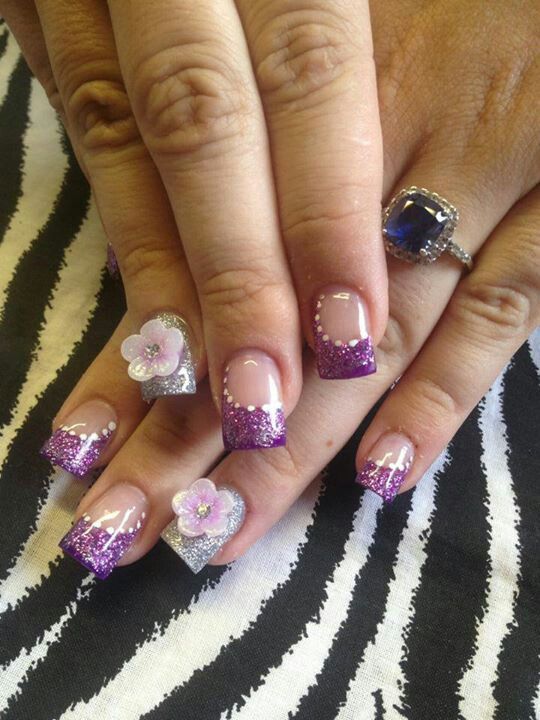 acrylic nail 3d nails flowers french purple gel glitter paint tip designs trendy latest