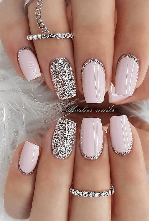 nail acrylic short glitter pink silver designs designtrends