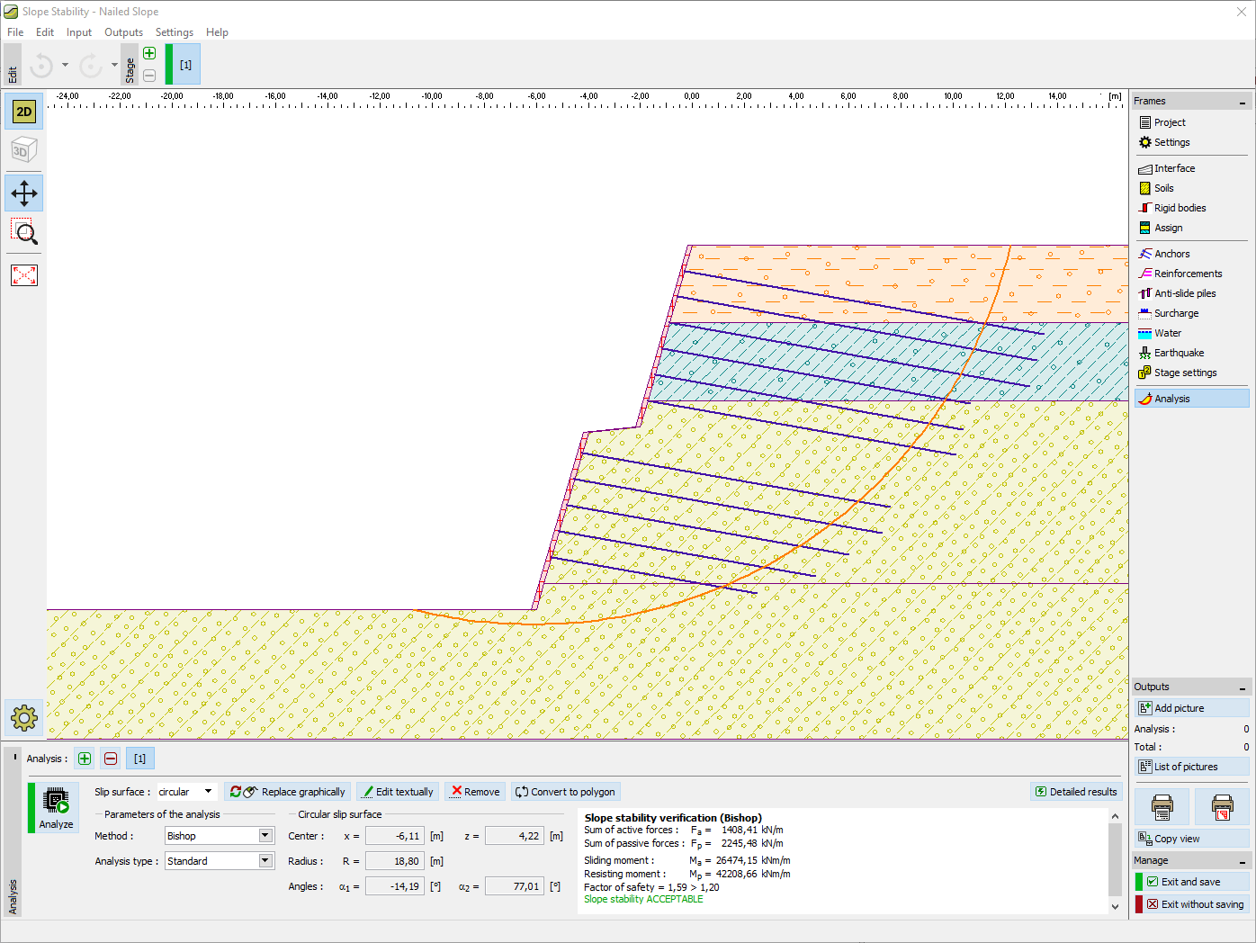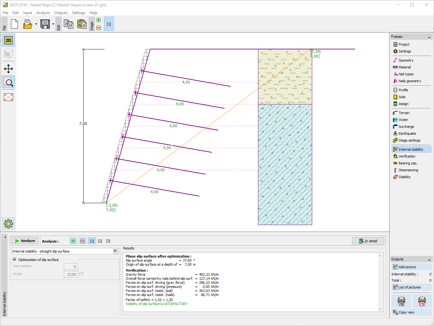 slope stability global verification soil nail nailed wall software fine stabilitet av geo5