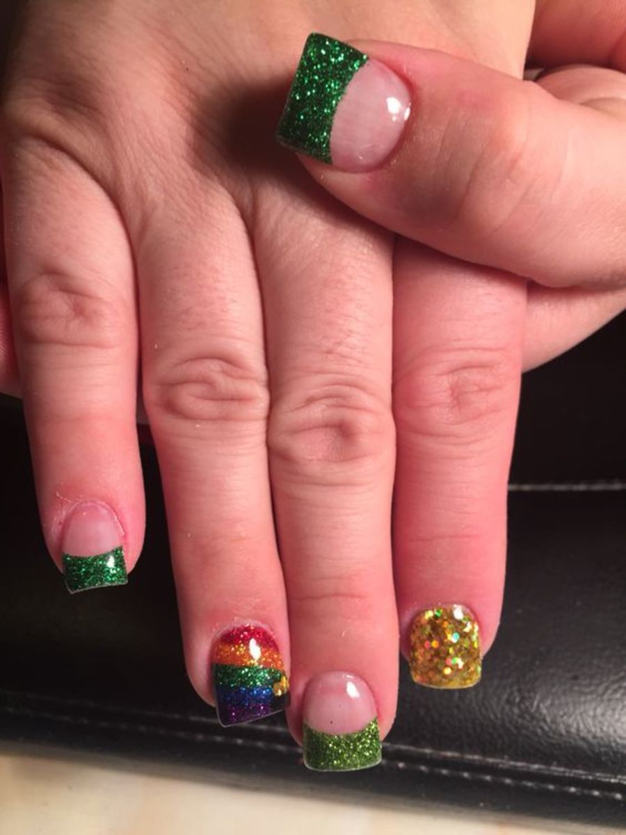 st patricks nail nails saint patrick designs glitter french gold gel gradient adorable sally toe autumn holiday beauty