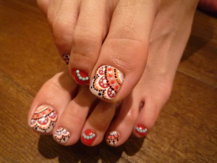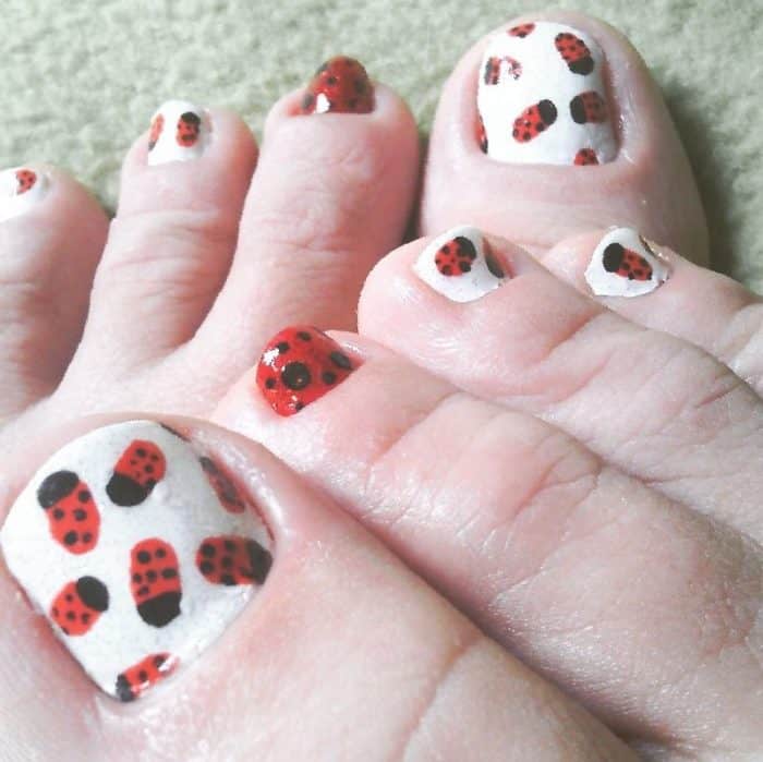 nail toe designs fall colorful ladybug